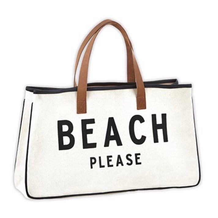 The Beach Please Tote Bag is made of 100% cotton heavyweight canvas with genuine leather handles.  Perfect for a day at the beach!