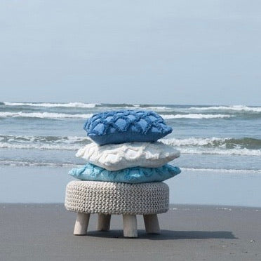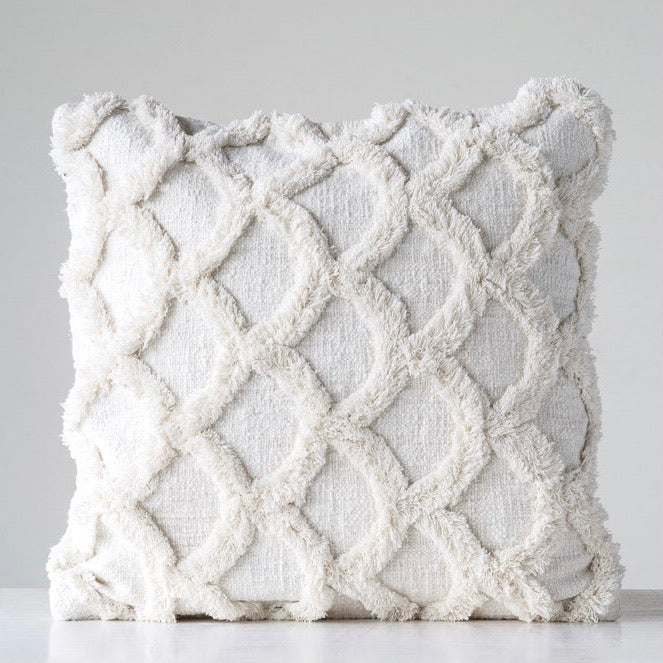 Our Chenille Scalloped Pillow is made of soft cotton tufted chenille with scallop pattern.