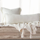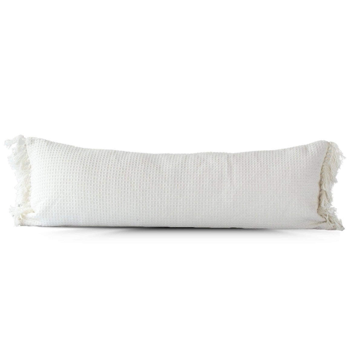 Our Waffle Weave Pillow Cover is made of 100% cotton and features fringed edges and hidden zipper closure. Made in India.