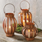 Our copper strapping lanterns feature hammered detail and hinged metal wire handles. Candles not included.
