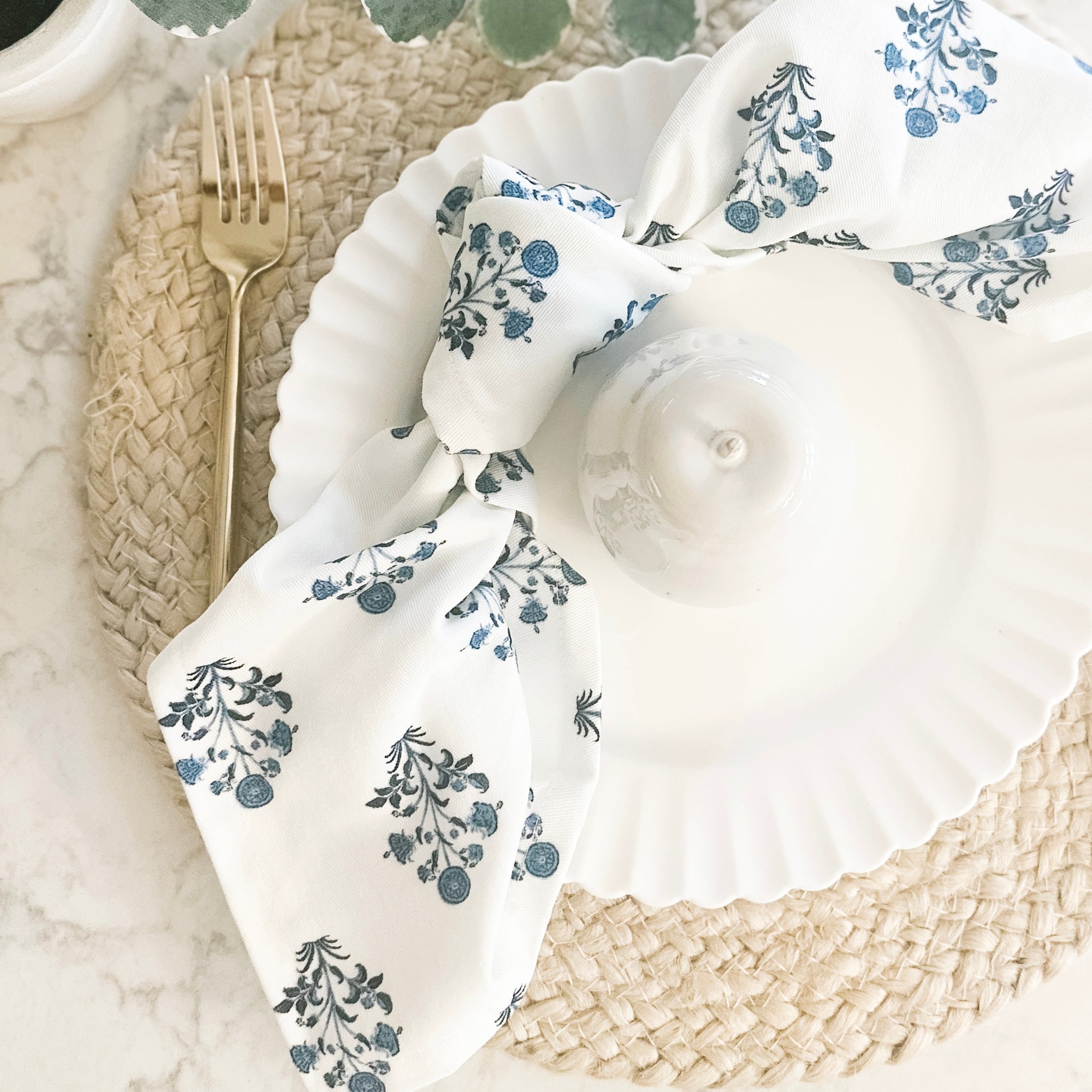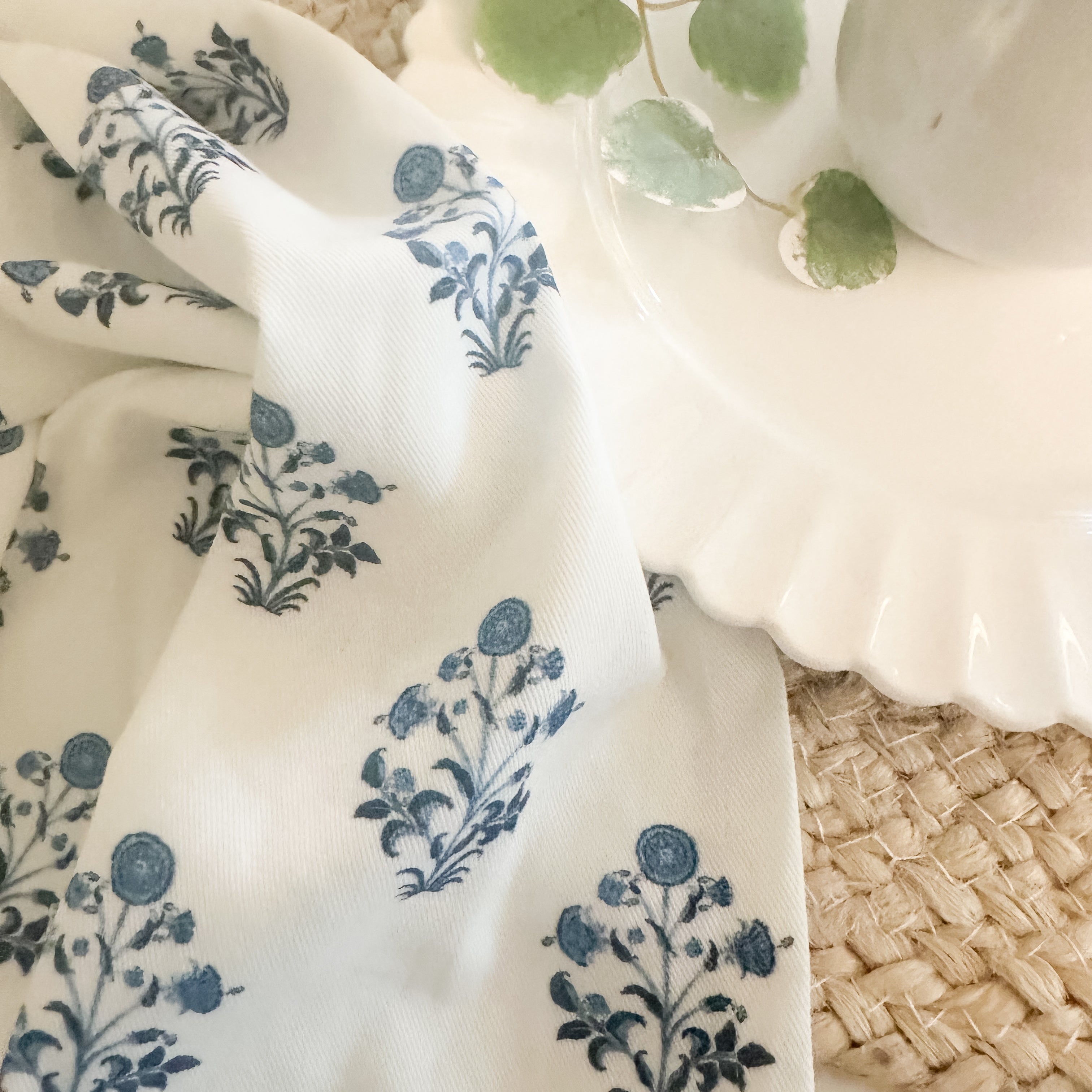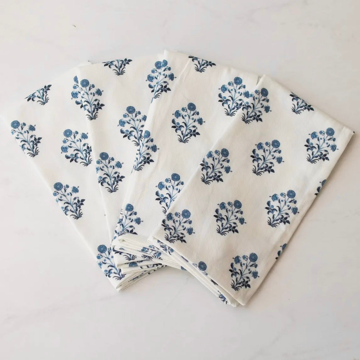 Blue Floral Block Print Napkins, Set of 4