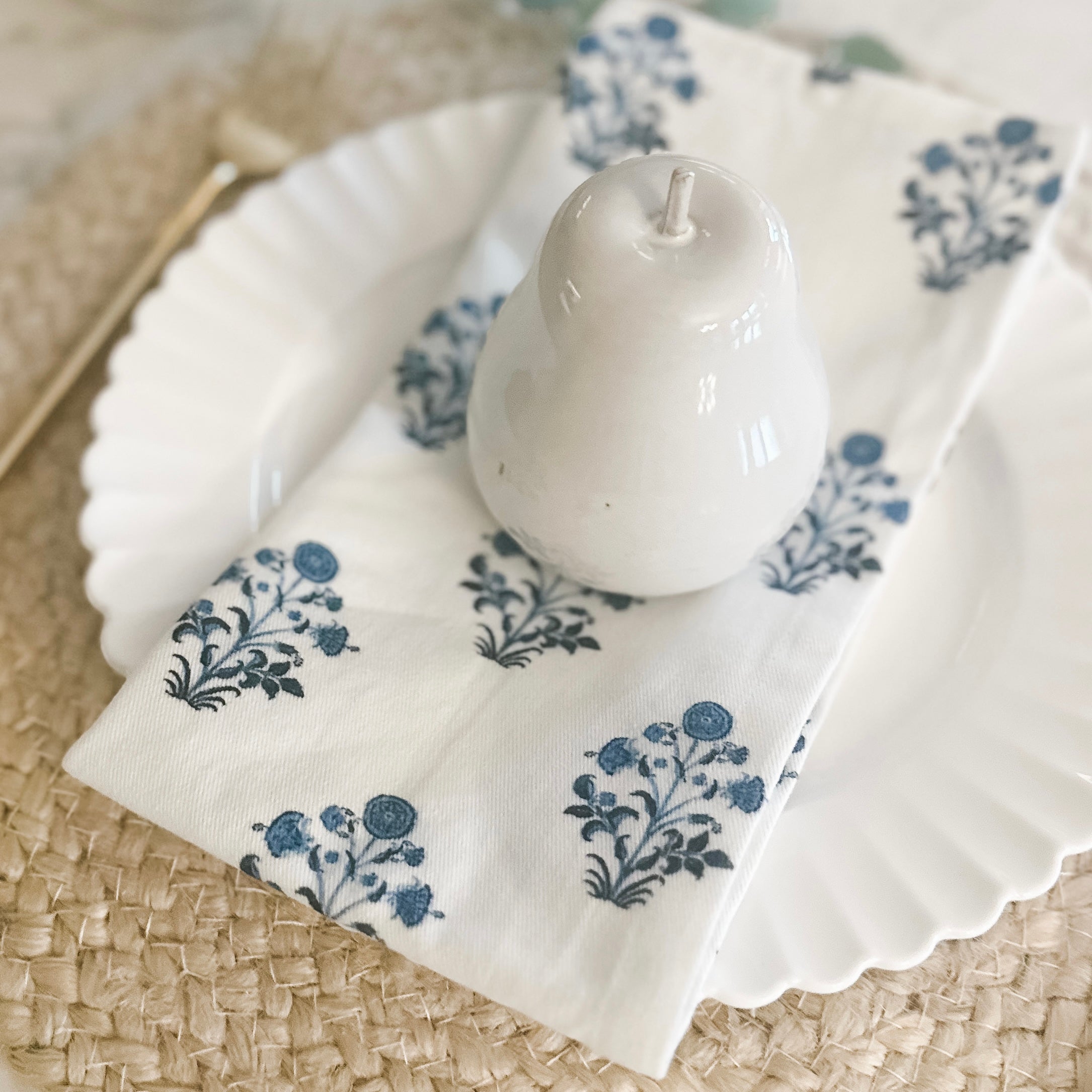 Also pictured: Jute Placemats & White Porcelain Pear